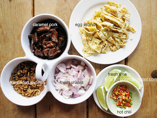shrimp paste rice, touched up with a bit of tang from fresh lime, also the crunchy fried dried shrimps, the softness of egg strands, sweet pungent of fresh shallots and a kick of hot chili....I'm exhausted already.